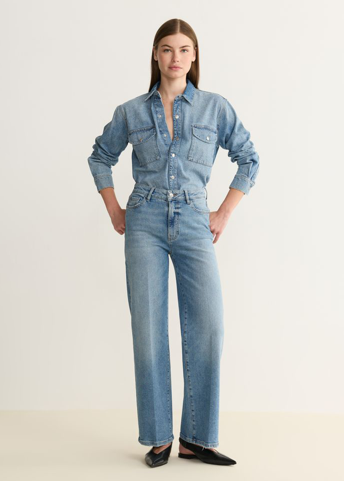 With a luxuriously laid-back look that reminds us of the south of France, NCE is right at home on the Côte d'Azur or just about anywhere else. Designed with a gently sculpting high-rise fit, these wide leg jeans are casual yet always sophisticated.