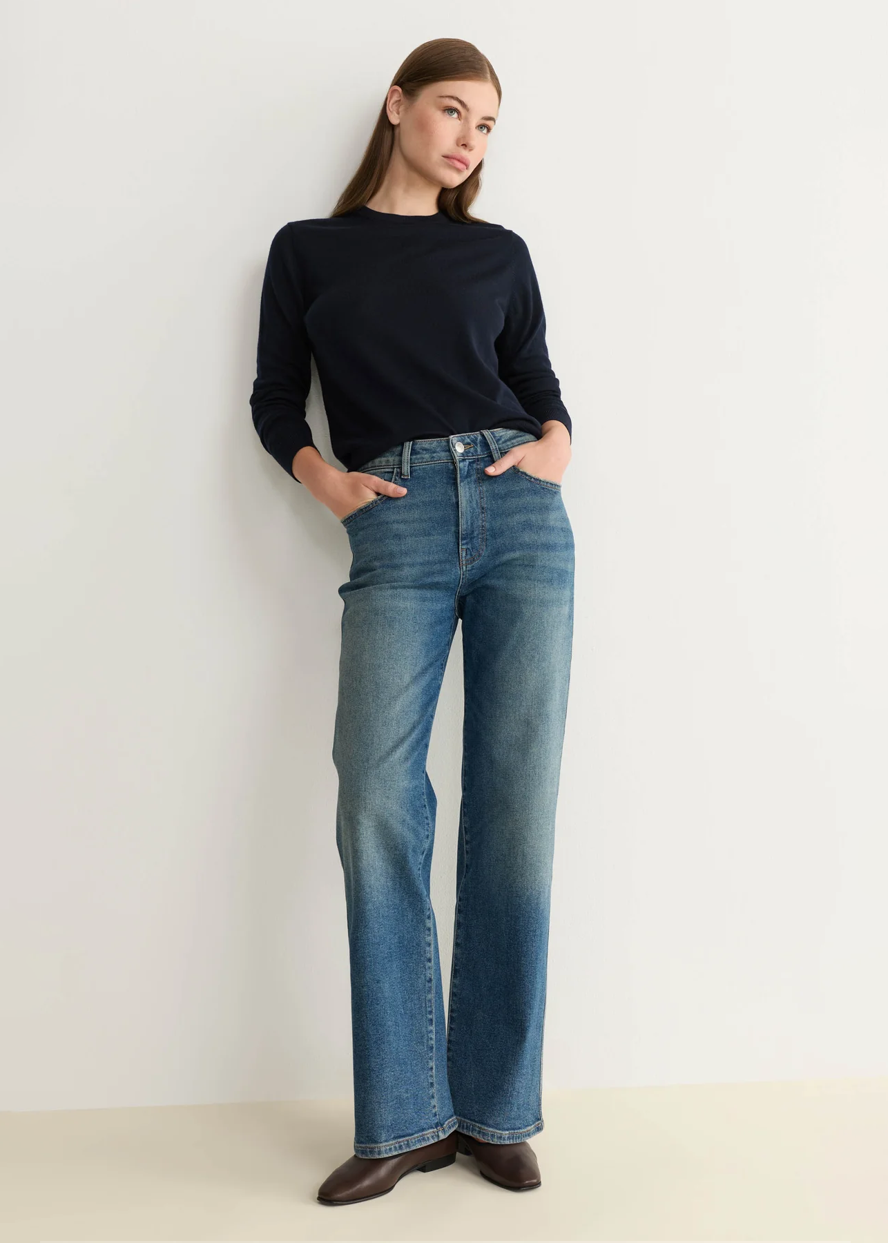 SAT is a high-rise straight jean that's a nod to the most-loved '90s denim style.